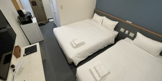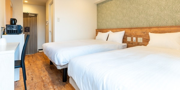 全室ツインルーム(ダブルベッド1台・シングルベッド1台)、