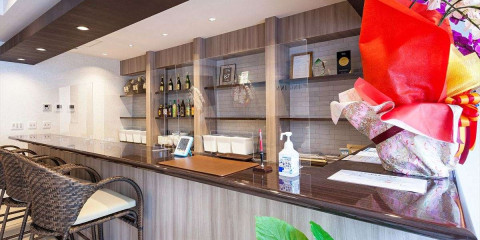 夜はお酒が楽しめるエントランスバーに早変わり