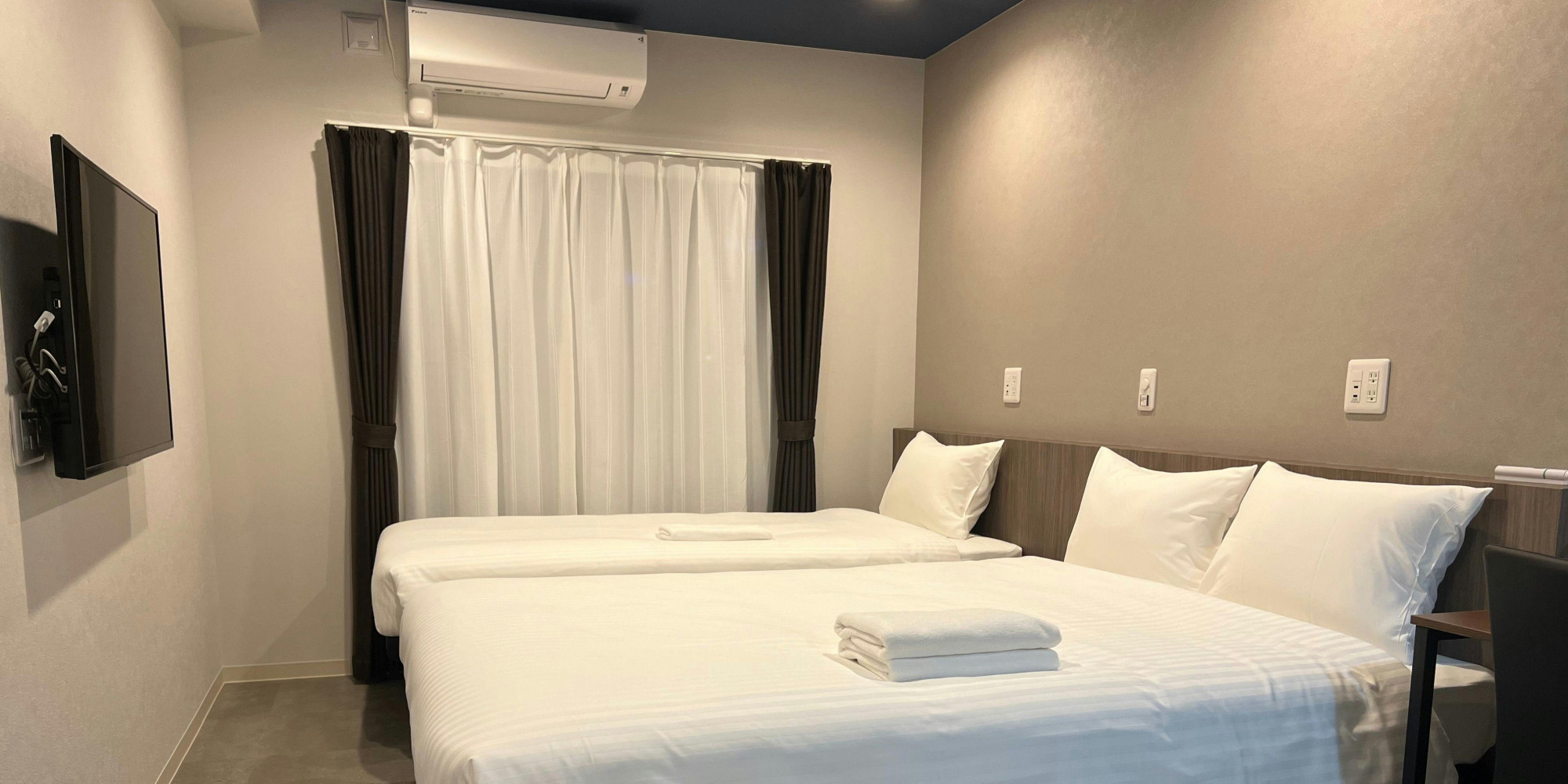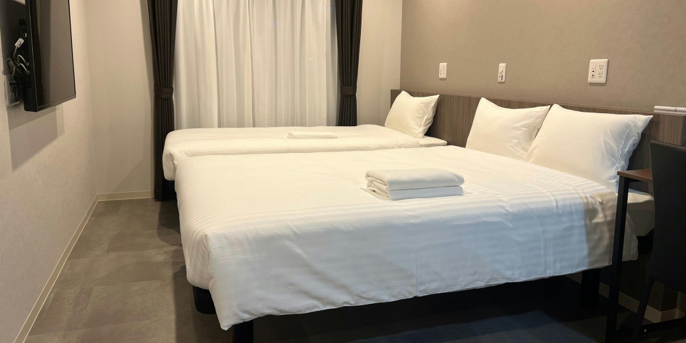 お一人から三人でも快適にお過ごしいただけるお部屋です。 フランスベッド社ダブルベッドは快適な寝心地で安眠へ誘います。 無料Wi-Fi、電子レンジ、洗濯乾燥機を備えます。