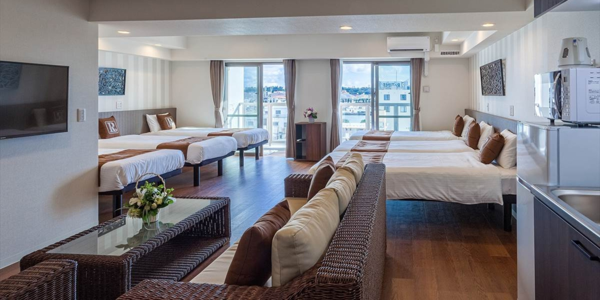 5名様まで快適にお過ごしいただける那覇市内では珍しいお部屋です。