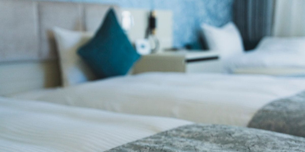 客室はシモンズ製ベッドを備え、快適な睡眠を提供します。