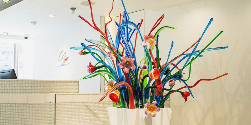 館内には琉球ガラスのオブジェや装飾を使用しています。