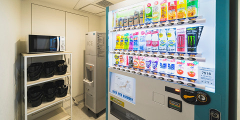 館内には自動販売機を備えたベンダールームがあり、ちょっとした飲み物の購入に便利です。