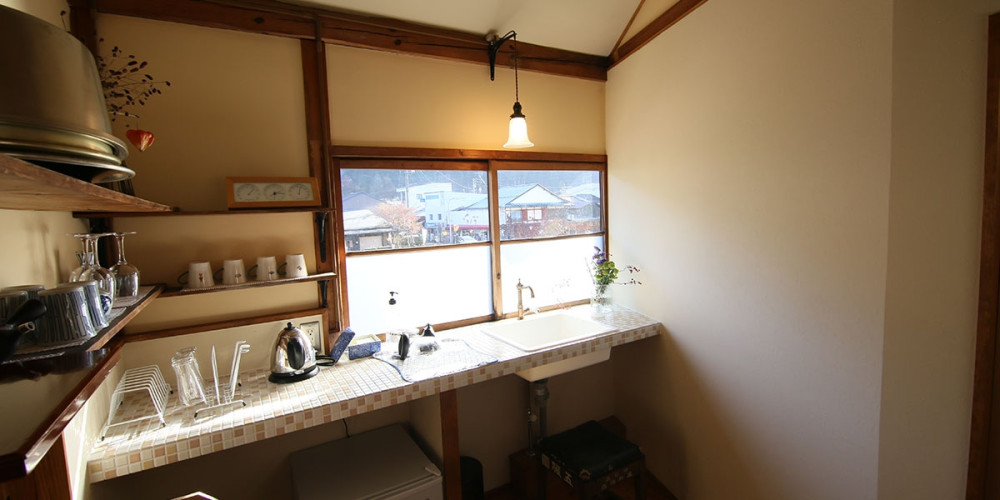 大きな窓からたっぷりと陽の光が入り、気持ちよくお使いいただけるミニキッチンをご用意。