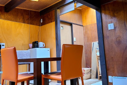 奥にはダイニングキッチンとテーブルも備えており、自炊や食事も快適にお楽しみいただけます。