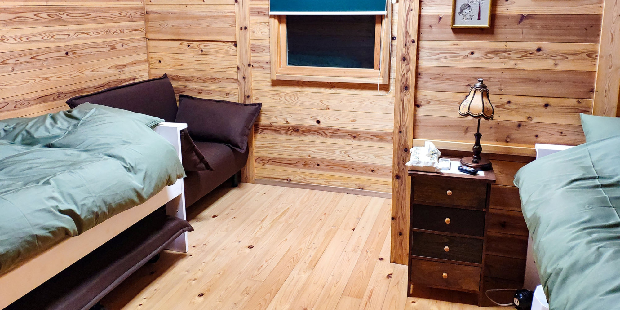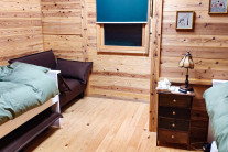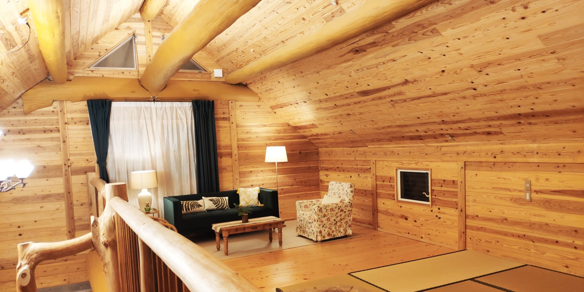 ログハウスの持つ優れた断熱性と木の調湿効果がある部屋で、
