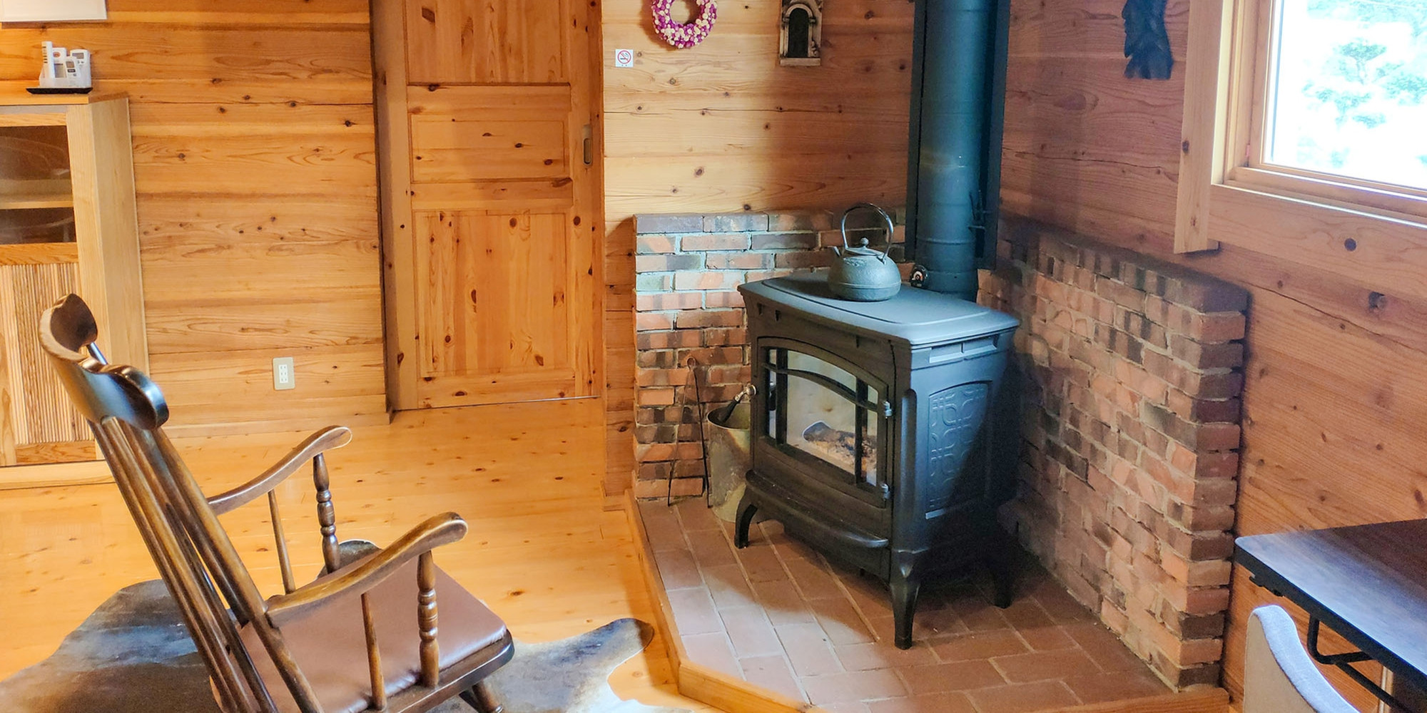 冬は薪ストーブの火で 暖かく、綺麗な空気で 過ごせるお部屋