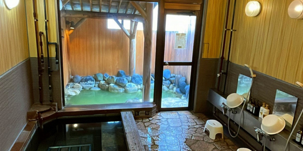 100%源泉かけ流しの硫黄泉。湯の色は自然の気のまま、ある日は透き通ったエメラルドグリーン、またある日は乳白色。