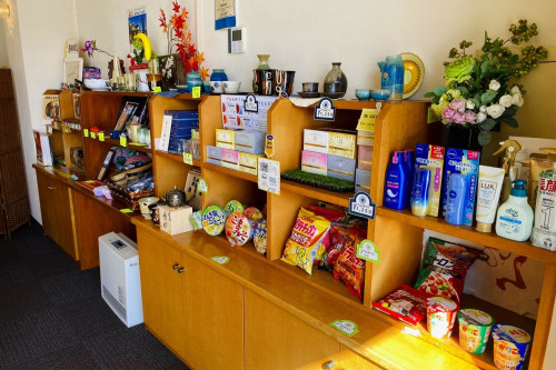 1Fのラウンジにて、地産品とハンドメイドをテーマに販売しております。
