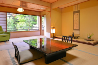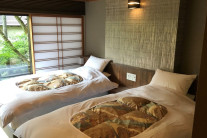 車椅子可、貸出用車椅子、バリアフリー対応の客室あり、エレベーター バリアフリー対応の客室が1部屋あります。こちらはエレベータから客室・寝室・浴室・トイレまで車椅子でご利用いただけます。また館内には貸出用の車椅子が1台ございますので、ご利用の際はご予約ください。 1階の料亭「宵むらさき」は椅子テーブル席になりますので、車椅子のご利用も可能です。 大浴場が離れにあり、途中に階段があるので、車椅子でのご利用はできません。 |