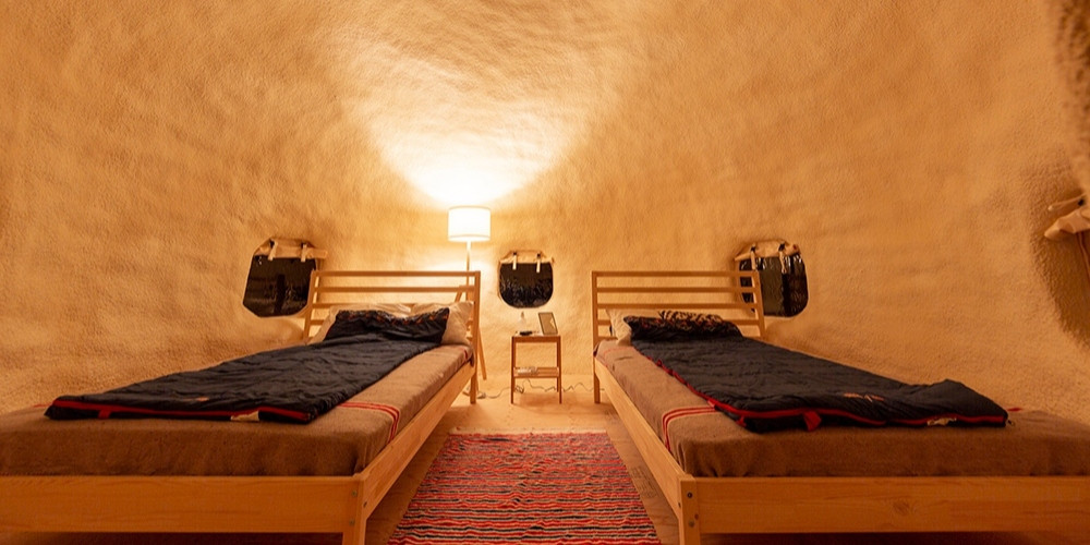 ベッドと寝袋でおやすみいただくお部屋と、お布団でおやすみいただくお部屋、2タイプのお部屋がございます。