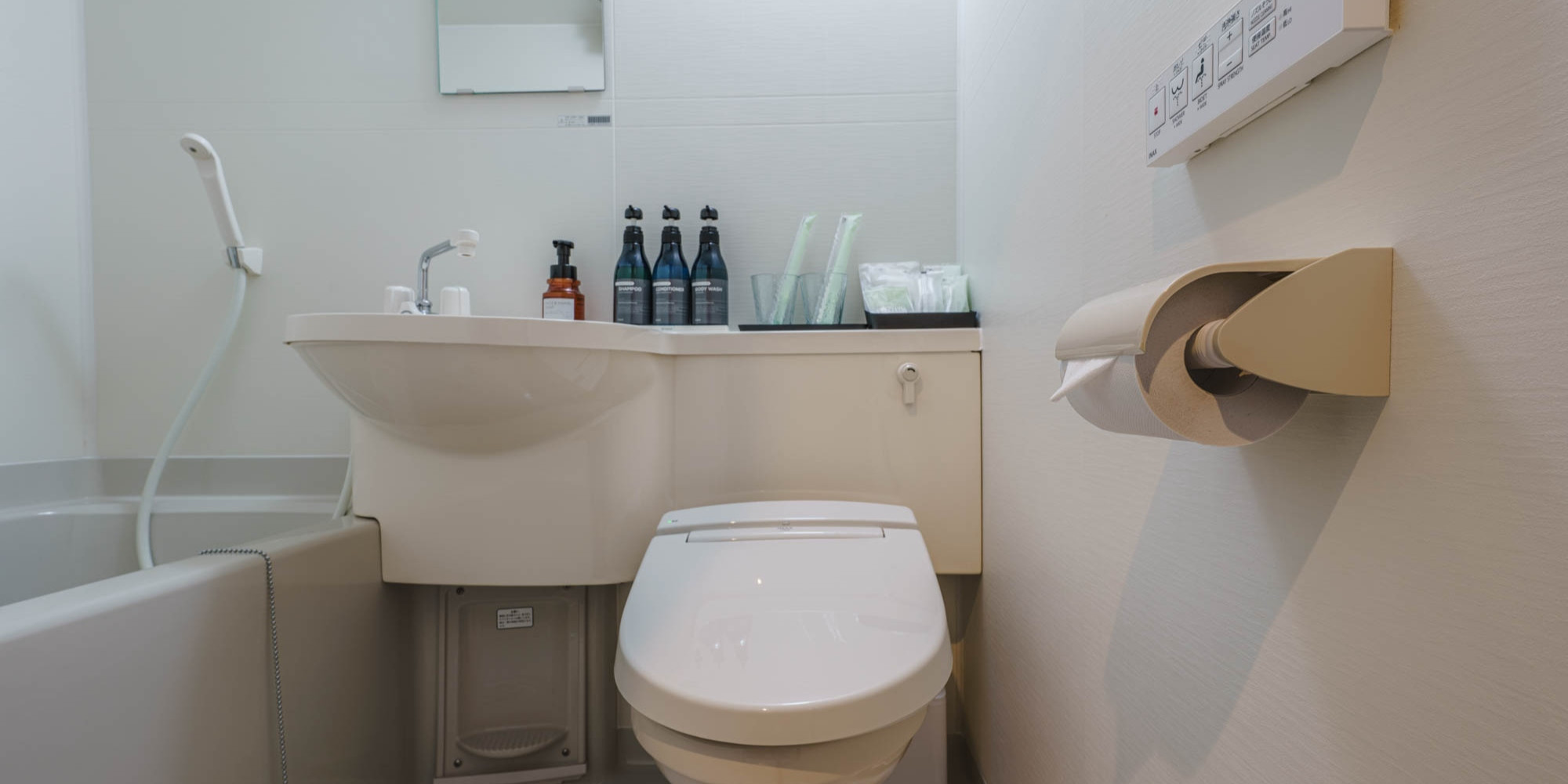 各お部屋にはバス・トイレ・洗面台を備えており、ゆったりとした滞在が可能です。