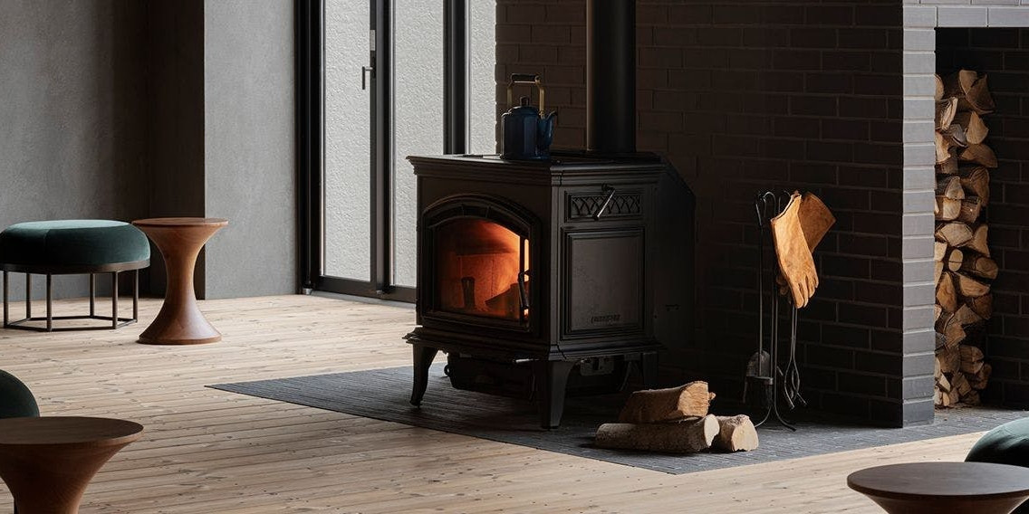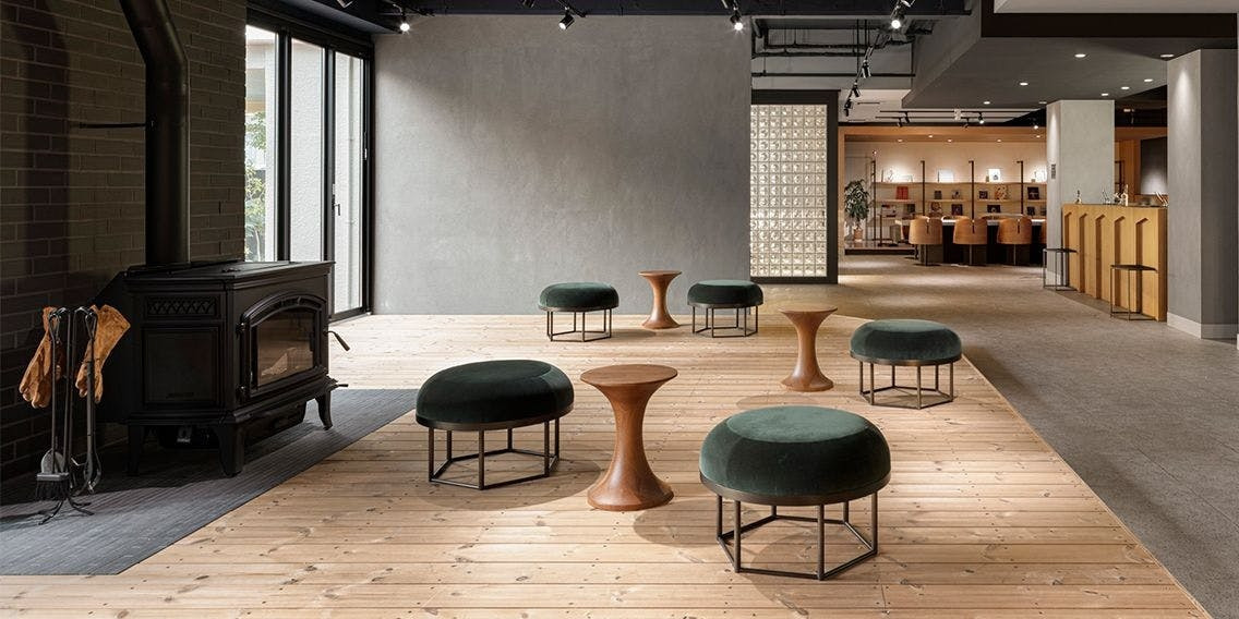 肌寒い季節には、薪ストーブに灯がともり、ほっこりと休まる空間に。