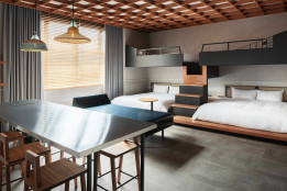 良質な睡眠環境と各客室にバス・トイレ・洗面を完備。 連泊や暮らすような旅をする方には嬉しい、室内ランドリーと新鮮な魚介や野菜・果物をみんなでワイワイと調理して楽しむプライベートキッチンを備えたお部屋も。