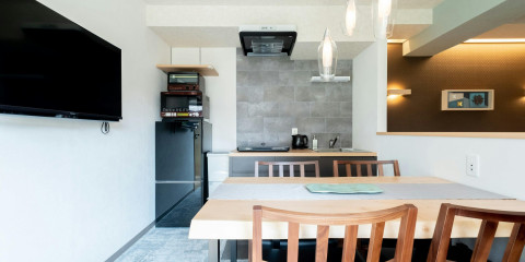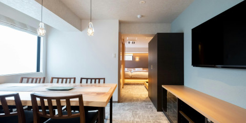 お好きな食材を使って簡単な調理も楽しめるので、長期滞在やご家族でのご利用にもおすすめです。ードルーム