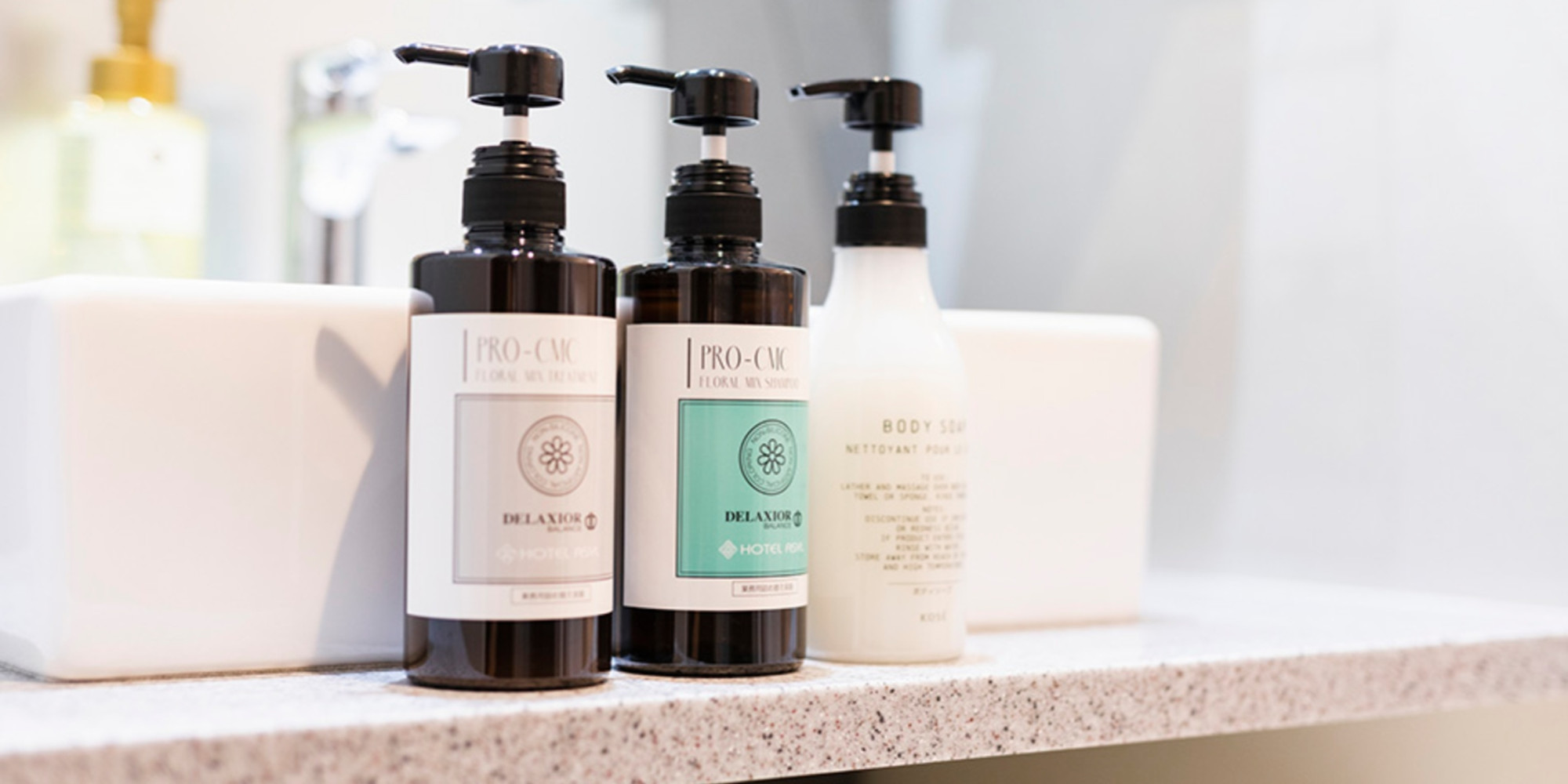 お客様が触れる設備やアメニティなどはすべて厳選した商品をご用意。