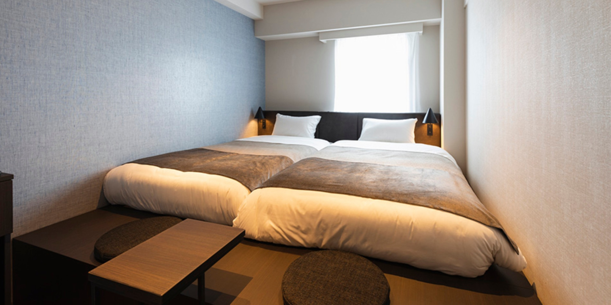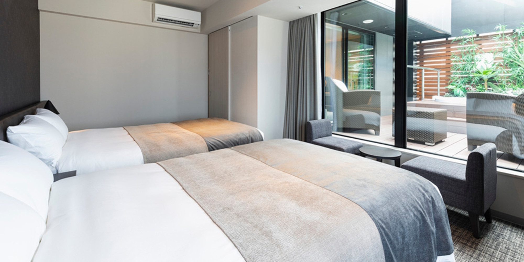 スタンダードなベッド構成が、落ち着きのある時間を演出します。