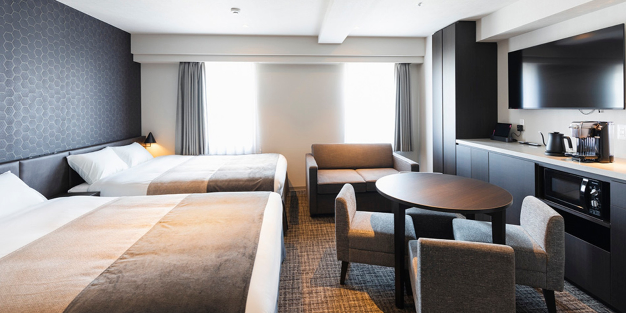 ベッドアレンジメントにより、最大5名でのご宿泊が可能な客室です。