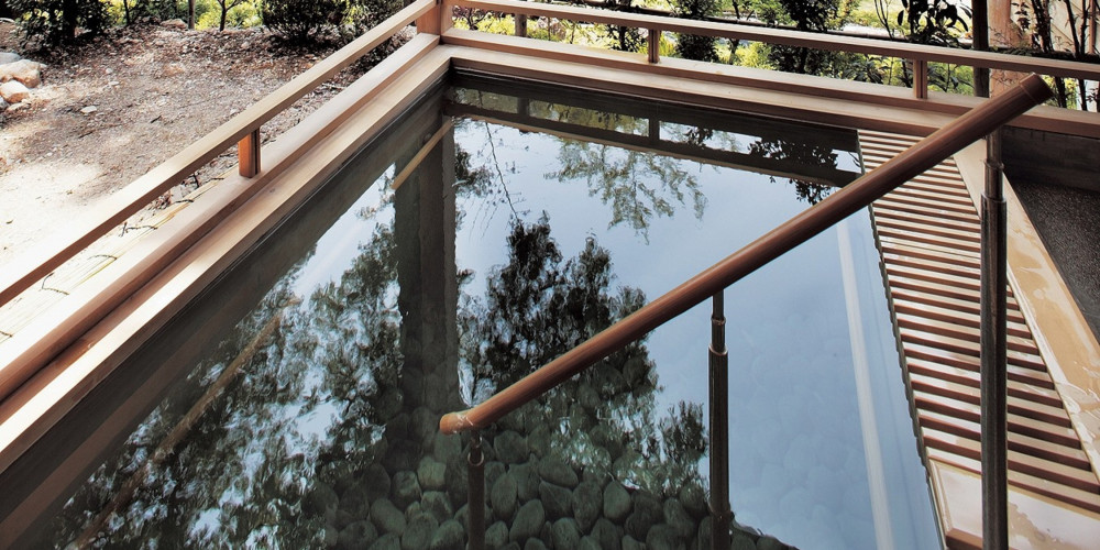 五十嵐川の石で組んだ石湯は、宿の敷地の最も川上に位置し、眺めも絶景です。