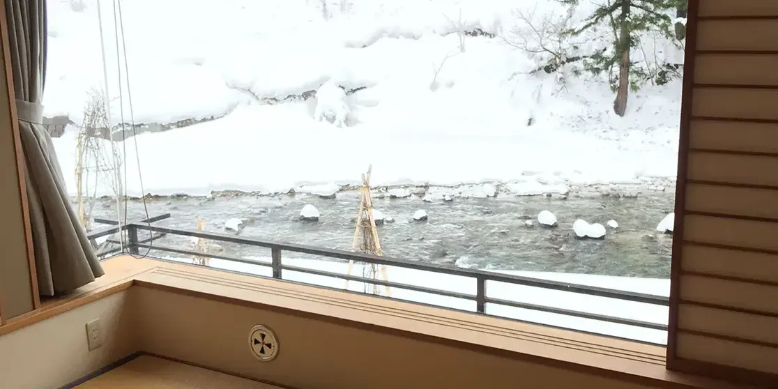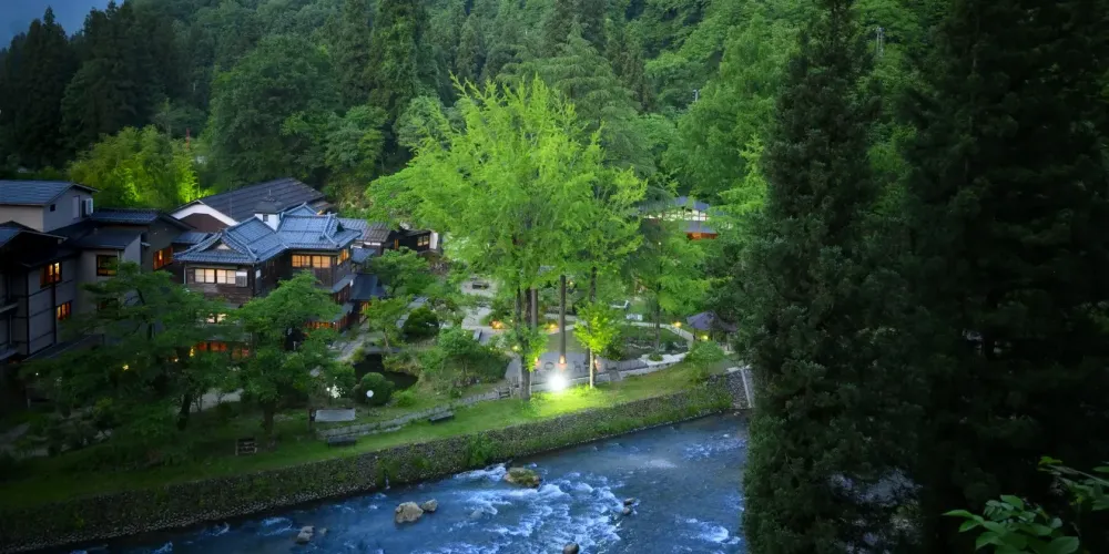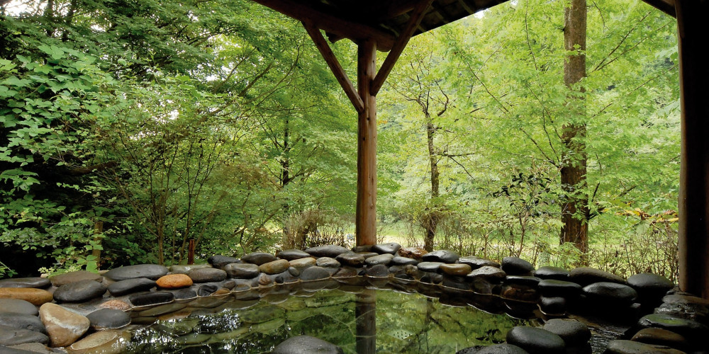 新潟の秘湯、越後長野温泉。強食塩泉と四季折々の味覚を堪能できる宿