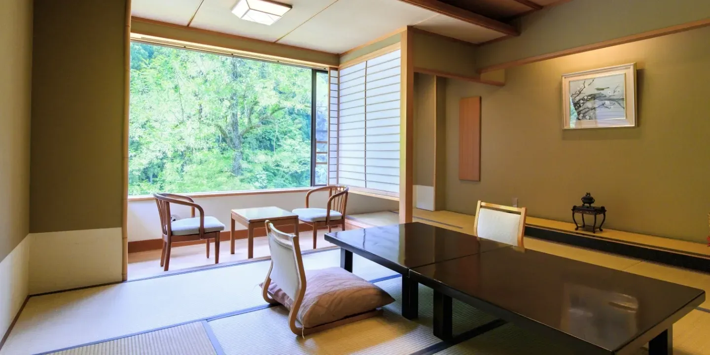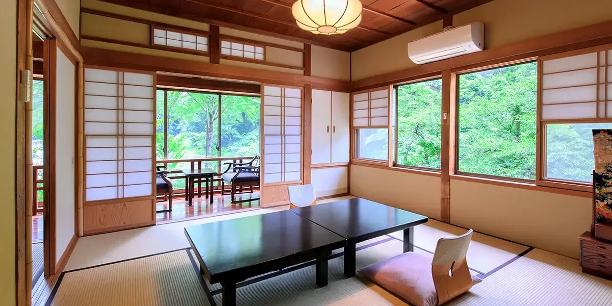 ※2025年11月より一部客室にトイレが増設されました。「緑風館(禁煙)【文化財/トイレ付】」よりご予約いただけます。