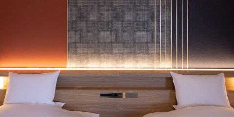 2022年4月、全客室をリニューアルし、シンプルで機能的なデザインに加賀五彩の華やかさをプラス。全室にサータ社製のベッドを採用し、快適な寝心地をご提供いたします。