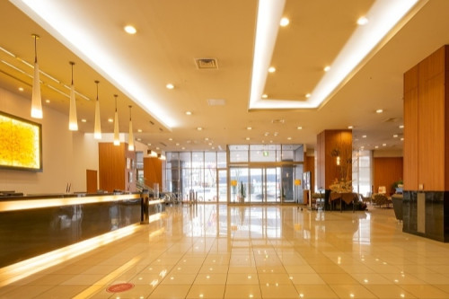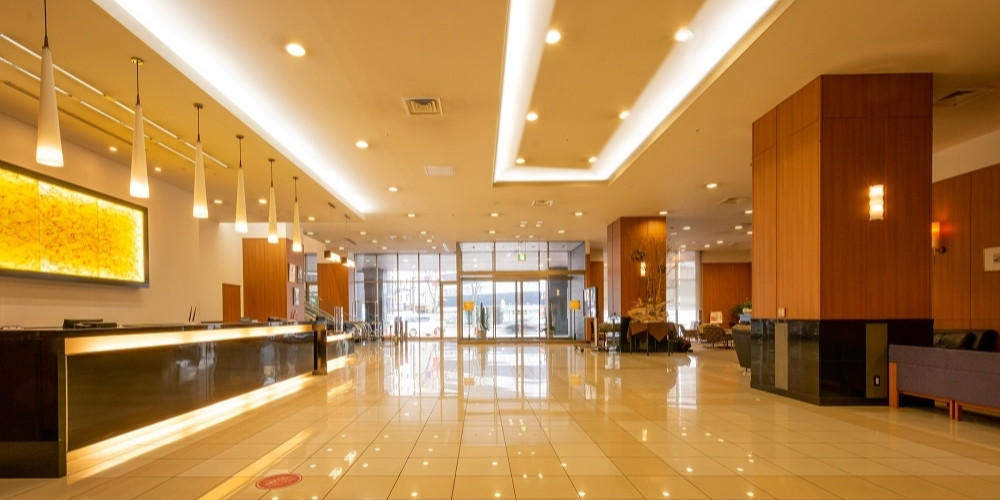 フロント・ロビーは1階(2~5階は会議室、宴会場、パーティールーム、チャペル)。