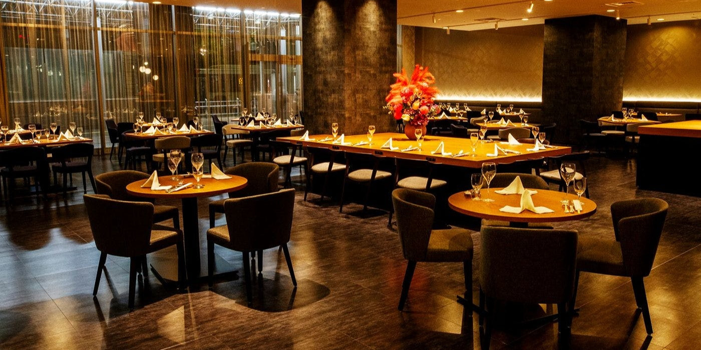 二つのレストランを居抜きし、解放感溢れるスペースに、シックで格調高く、