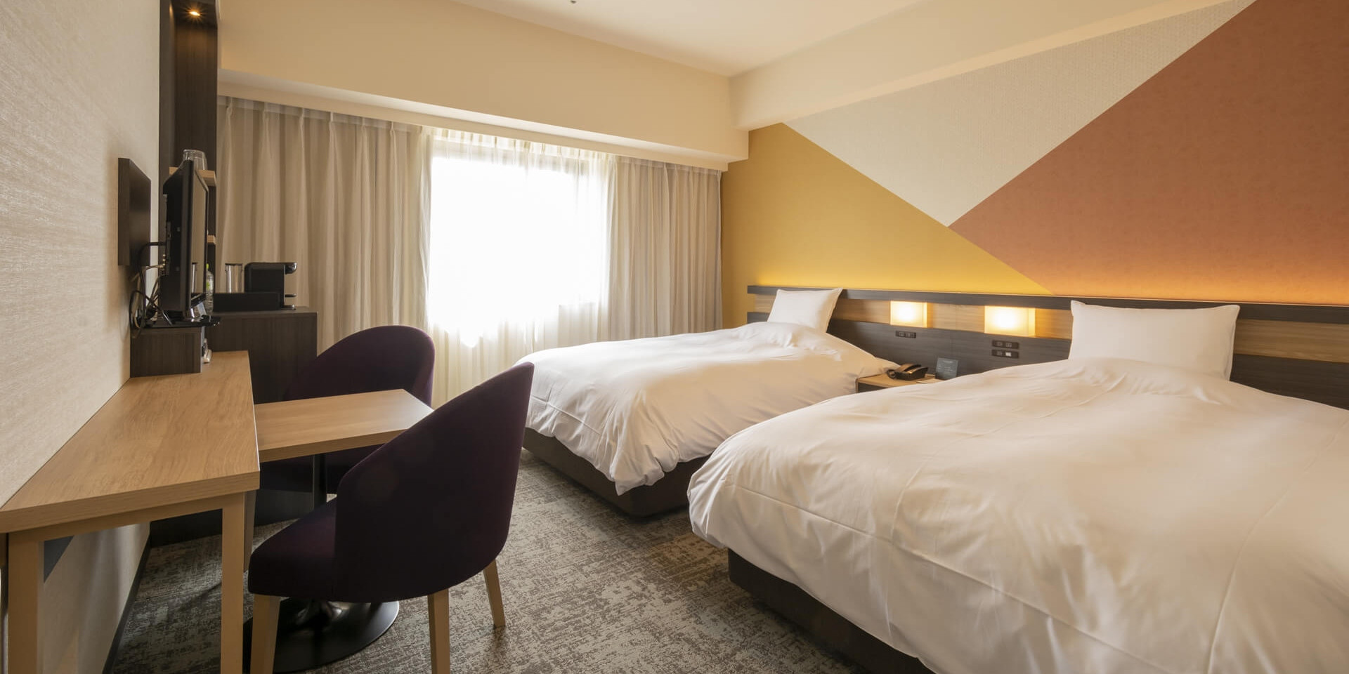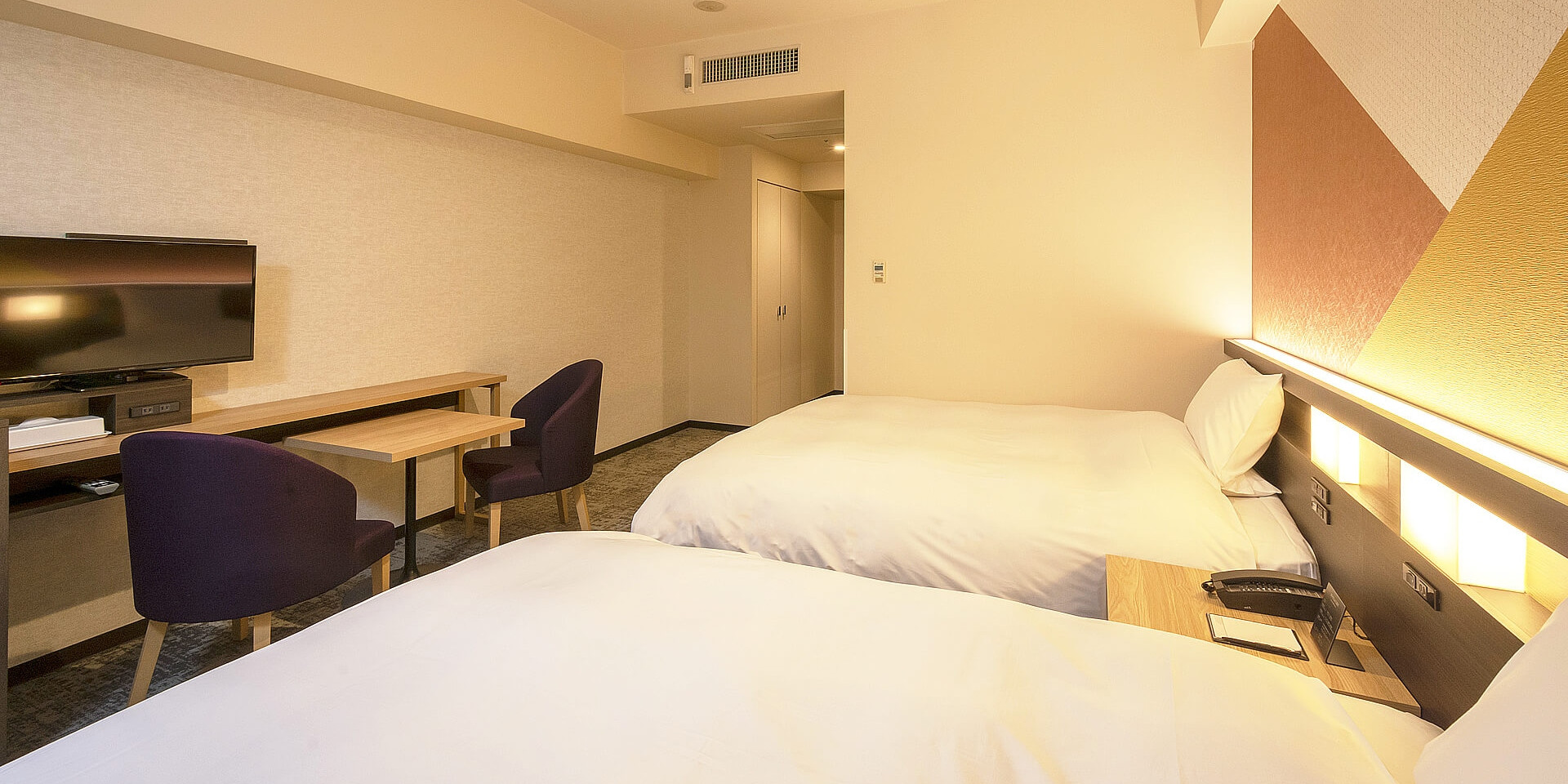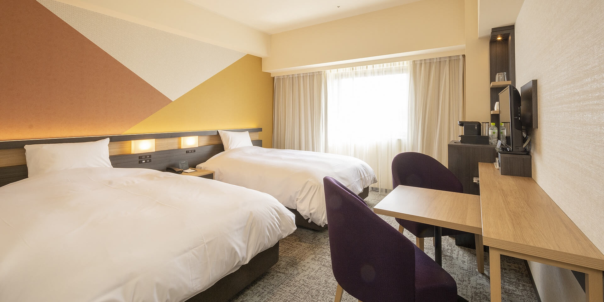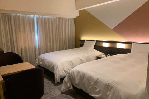 市内では広めの22平米、102cm幅のベッドを2台ご用意したツインルーム。ご友人、カップルでのSTAYに最適です。