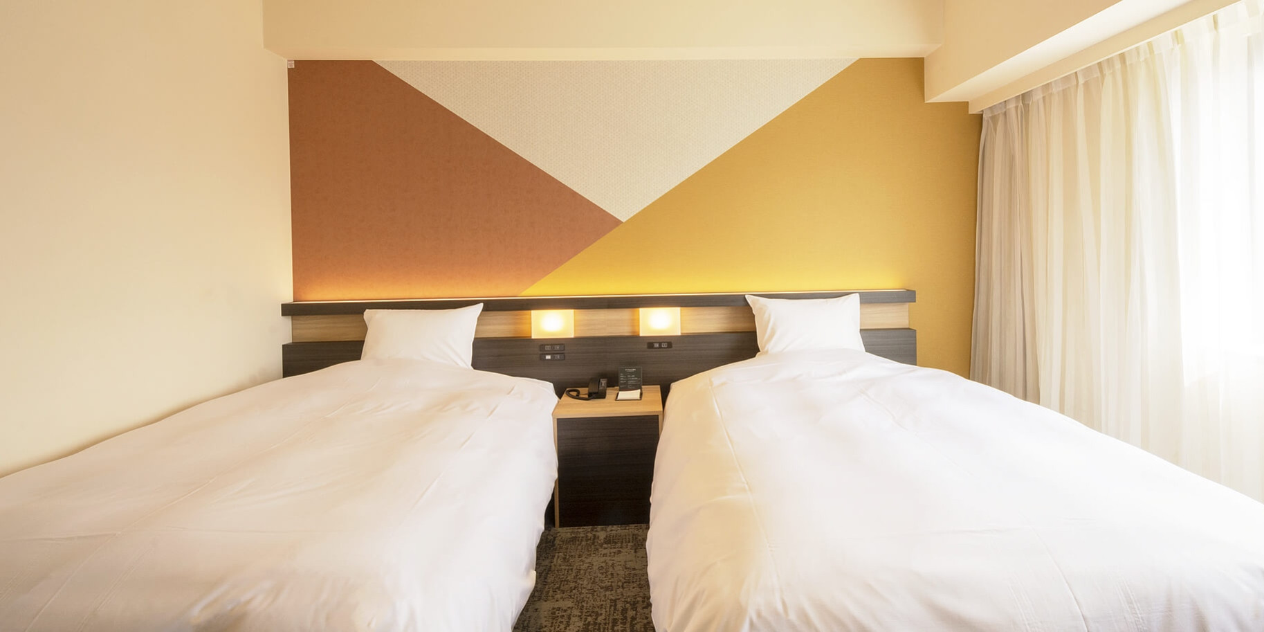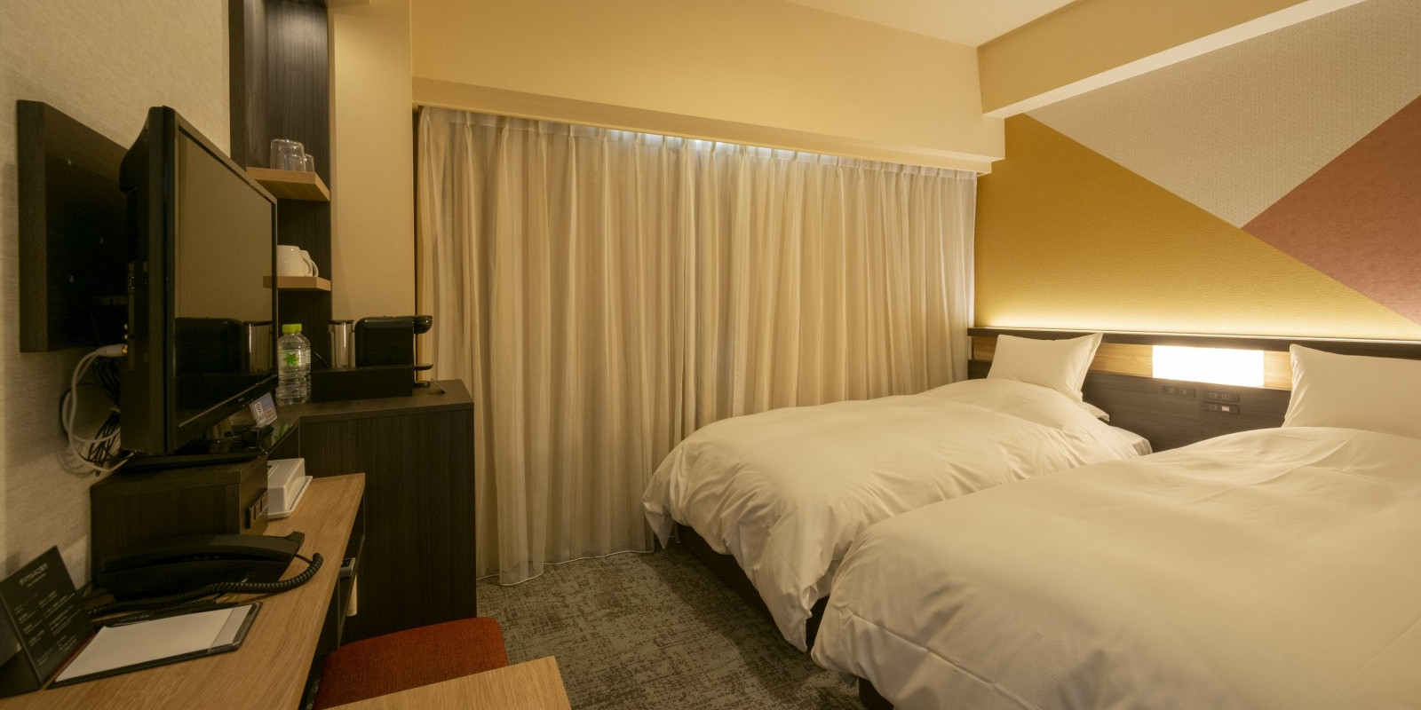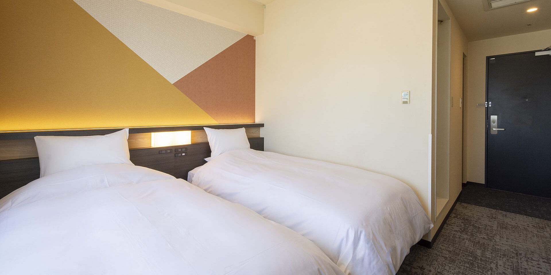 市内では広めの22平米、102cm幅のベッドを2台ご用意したツインルーム。ご友人、カップルでのSTAYに最適です。
