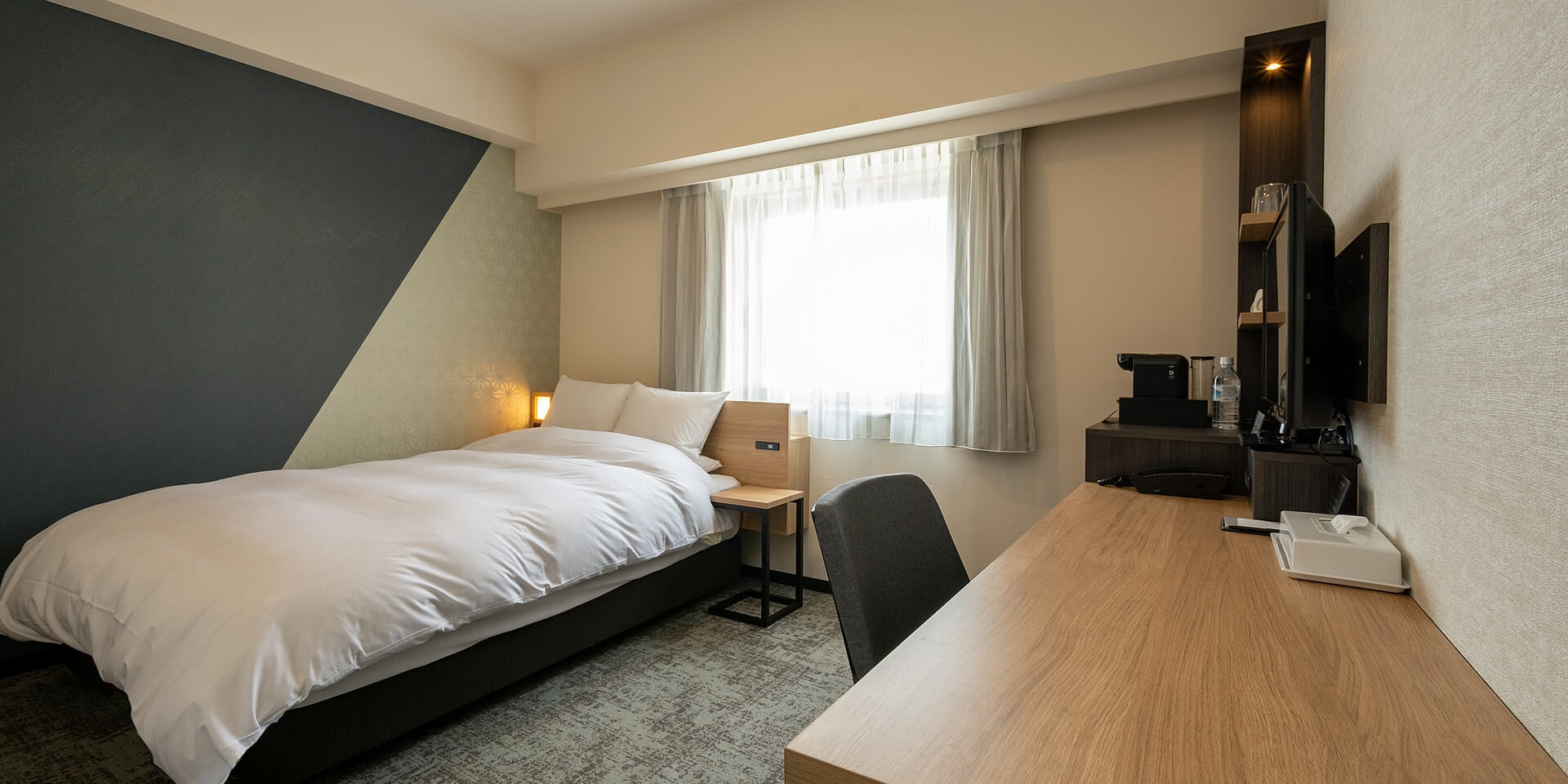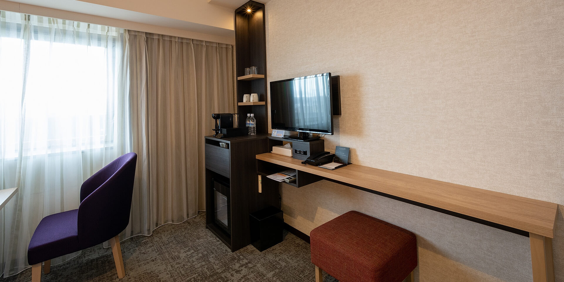インターネット接続無料(無線)、コーヒーマシーン完備。金沢らしいスタイリッシュな内装のお部屋で素敵な夜をお過ごしくださいませ。