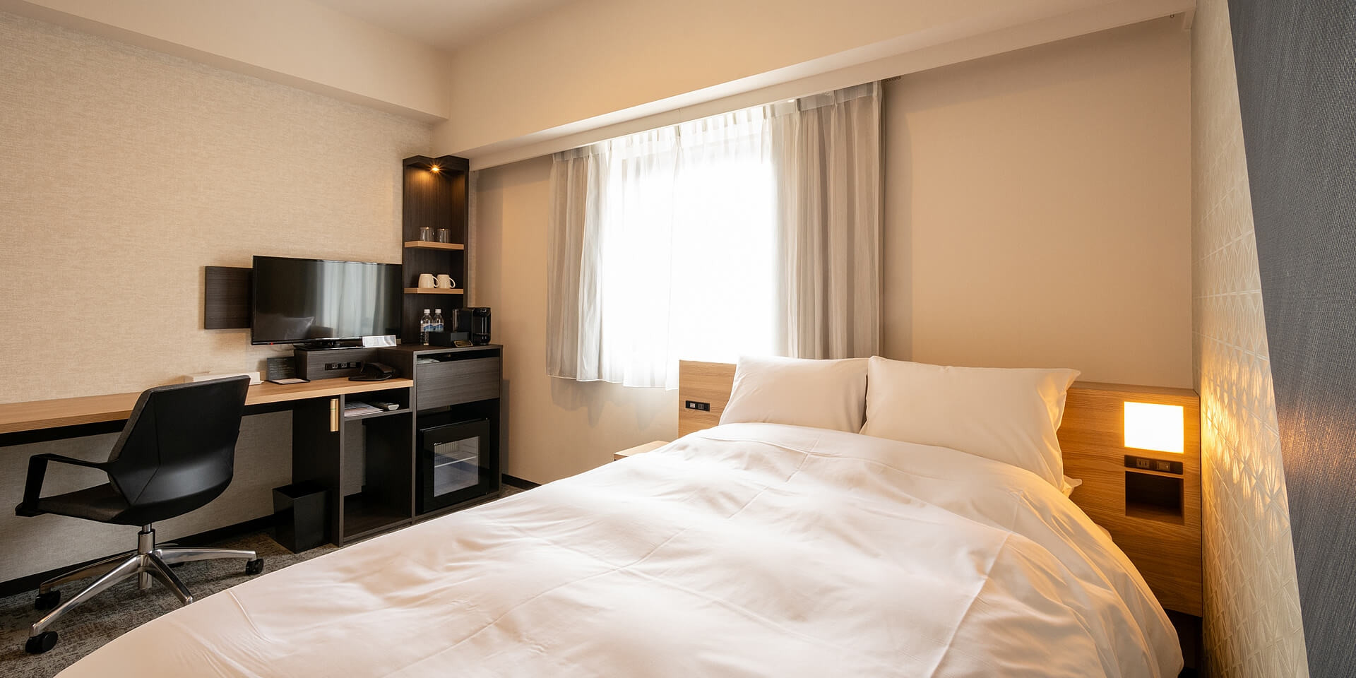 市内では広めの22平米、ゆとりある139㎝幅のベッドので、カップルのお客様はもちろんお一人様でのご利用もおすすめ。