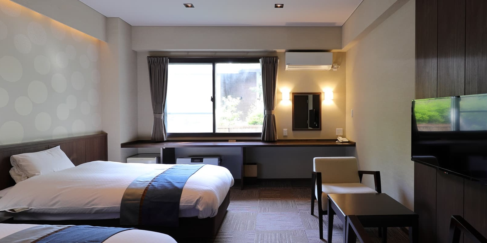快適で安心な滞在を—バリアフリー対応の洋室で、すべてのお客様に優しい空間。