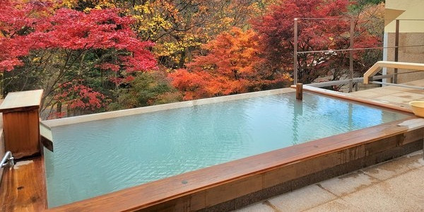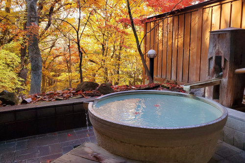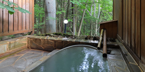 自然に囲まれた露天風呂では、奥塩原の四季折々の美しい風景を眺めながら、硫黄泉を楽しむことができます。