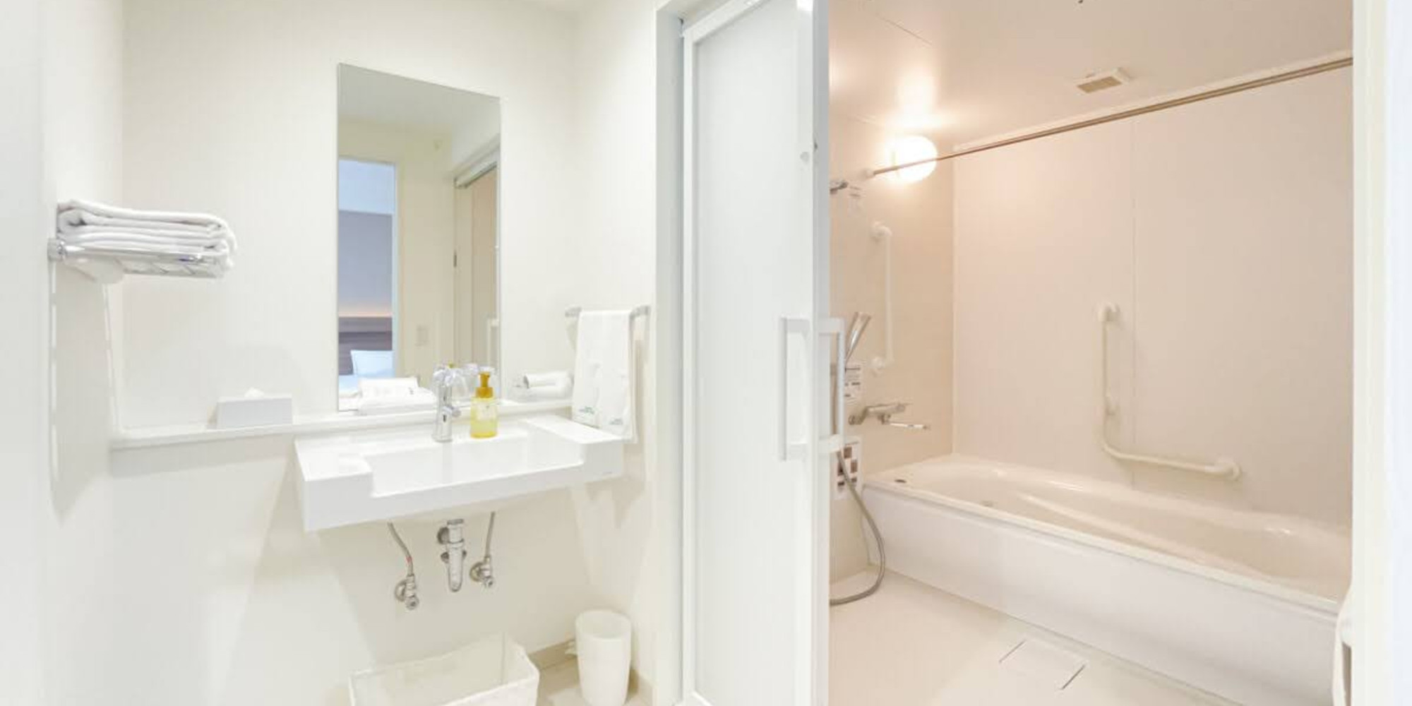浴室/トイレ/洗面台が分かれたセパレートタイプの水回りは長期の滞在、ご家族でのご宿泊も快適にお過ごしいただけます(一部ユニットバスあり)。