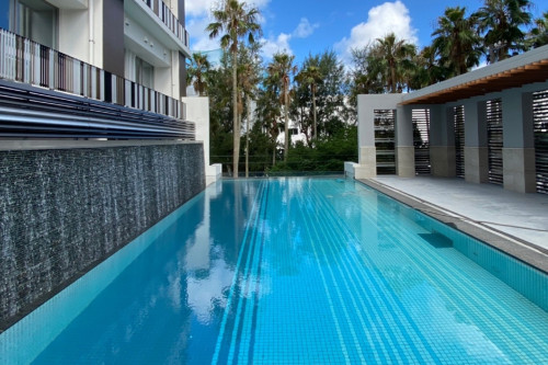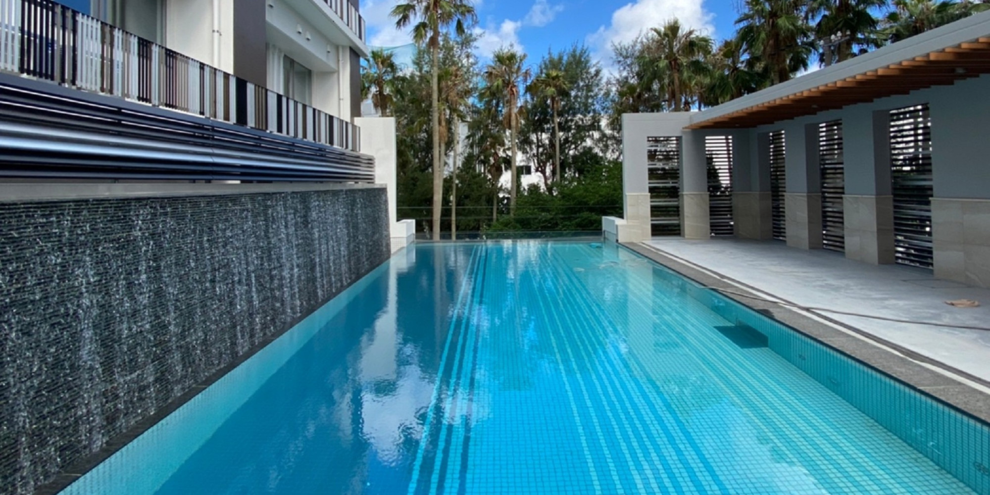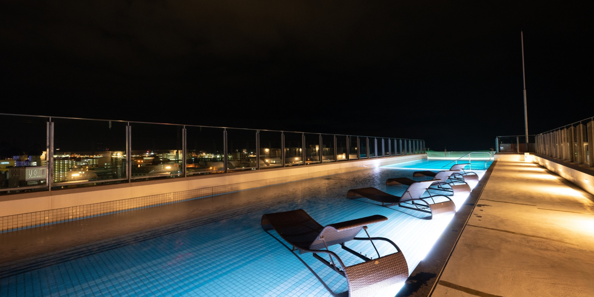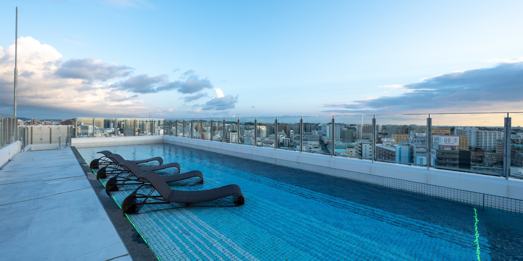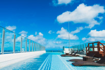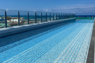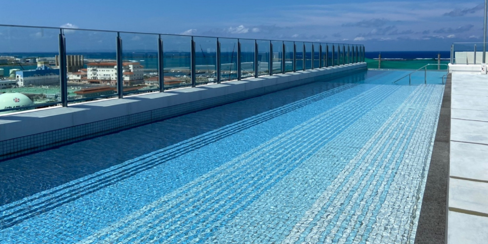 地上48mの高さにあるスカイプールは、海側は透明なアクリル板で空と海と繋がっているような錯覚を覚えます。