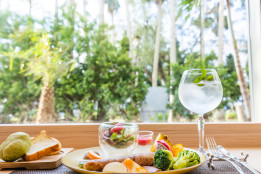 起きたばかりの体にやさしくかつ一日の活力となるよう、海鮮丼ぶりをはじめ出汁のうまみが味わえるお茶漬けや旬の沖縄野菜しゃぶしゃぶなど、ビュッフェスタイルでいただけます。