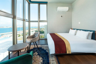 特別な日のご旅行に、那覇港を見渡すパノラマビューと屋上階のプライベートジャグジーをお楽しみいただけるスイートルームを ご用意いたしました。