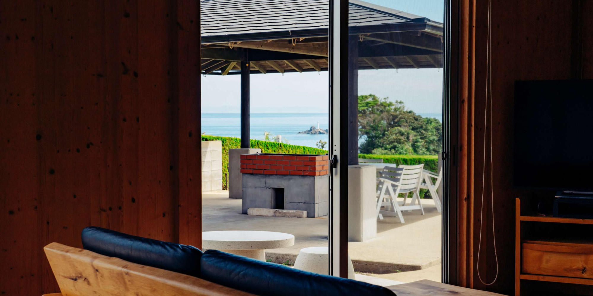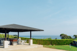 広々屋根付きオーシャンビューBBQテラス完備