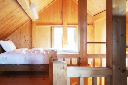1階:和室に布団2枚 / 2階:寝室1室ダブルベッド×1、個室2室それぞれシングルベッド×1 / 3階ロフト:シングルベッド×1