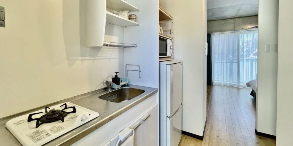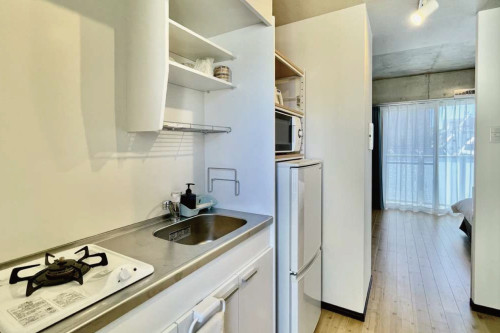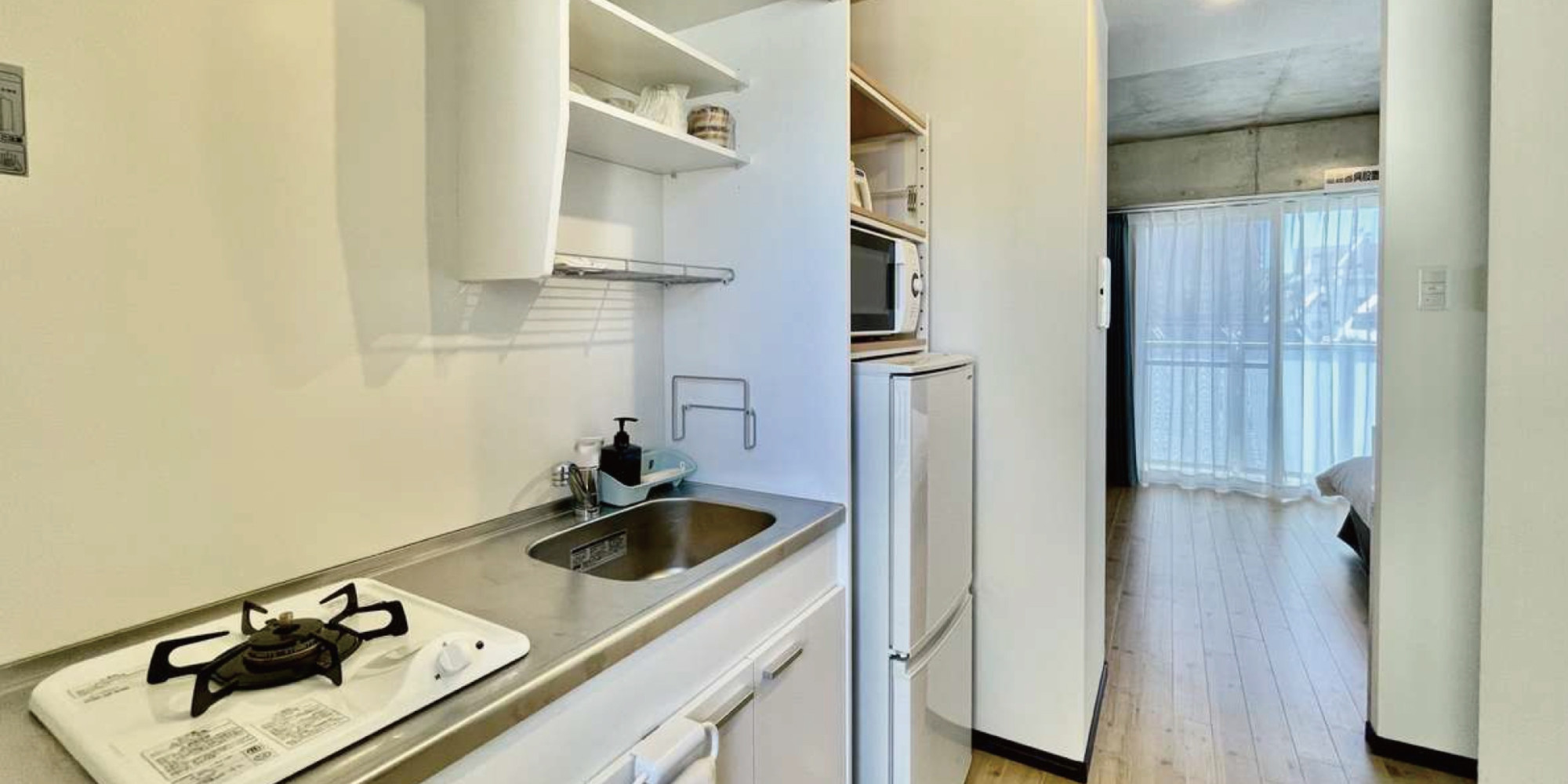 全自動洗濯機、ガス衣類乾燥機、キッチン(1口ガスコンロ)、冷蔵庫、電気ケトル、電子レンジ、掃除機、アイロン・アイロン台などが完備。