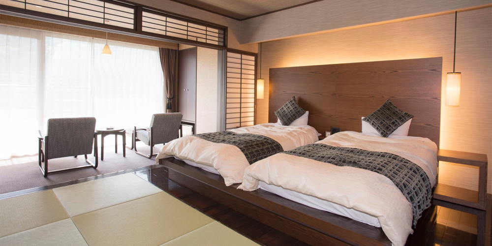 客室はせせらぎが聴こえるリバーサイド。