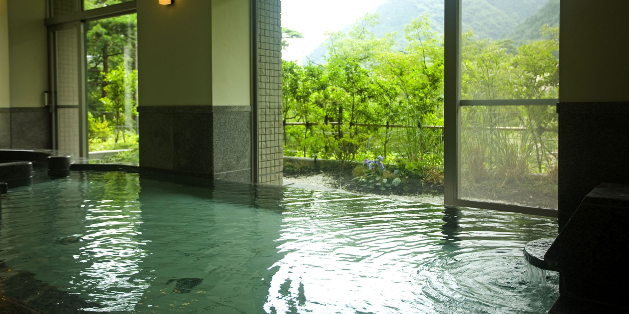 鬼怒川渓谷に面した開放感あふれる大浴場でおくつろぎいただけます。