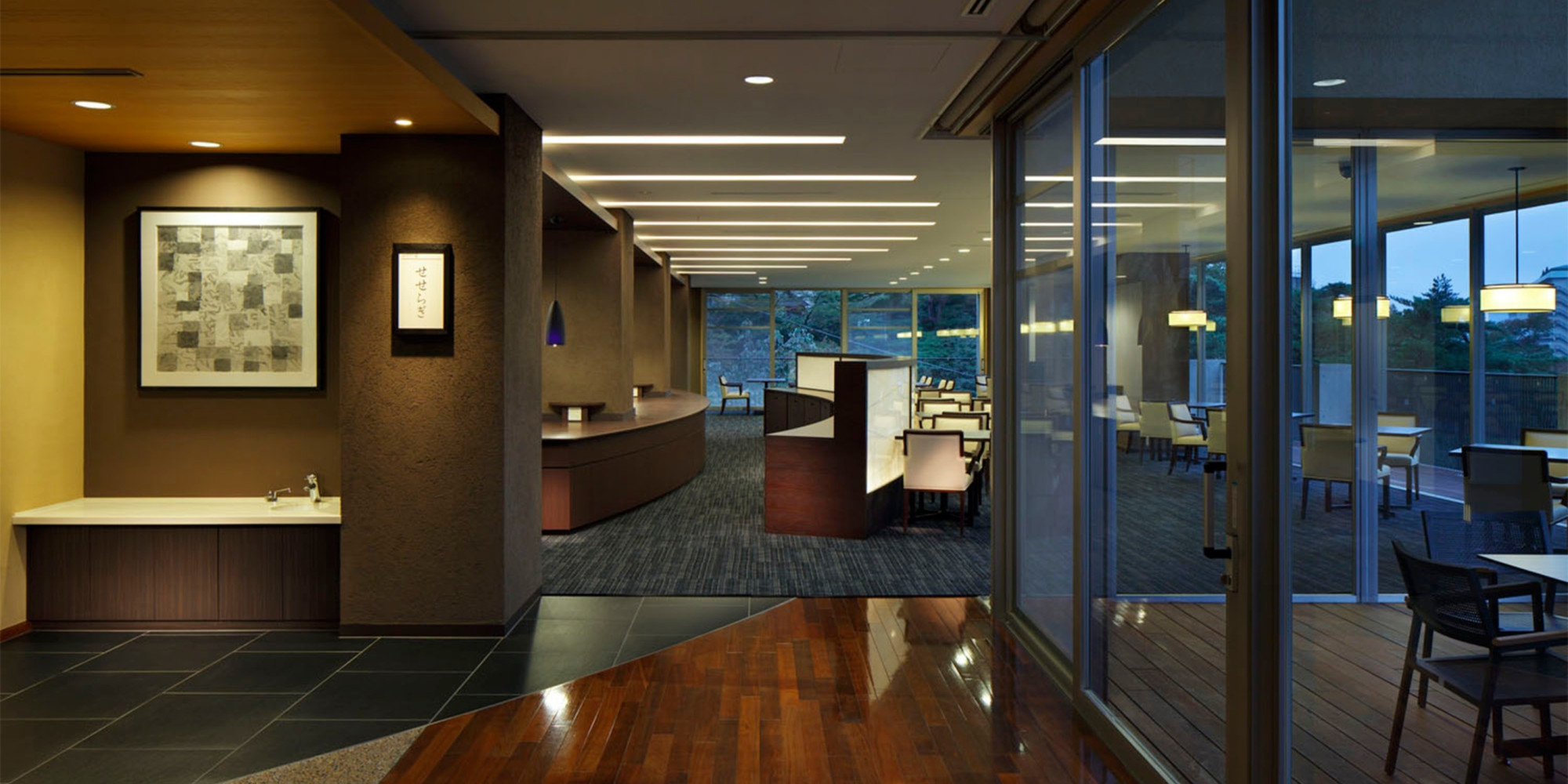 広いロビーからは鬼怒川渓谷の絶景が広がり、和モダンで落ち着いた館内では静かで贅沢な時間を過ごせます。