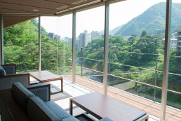 最上階(5階)にある特別室からは雄大な鬼怒川と景色を眺めることができます。