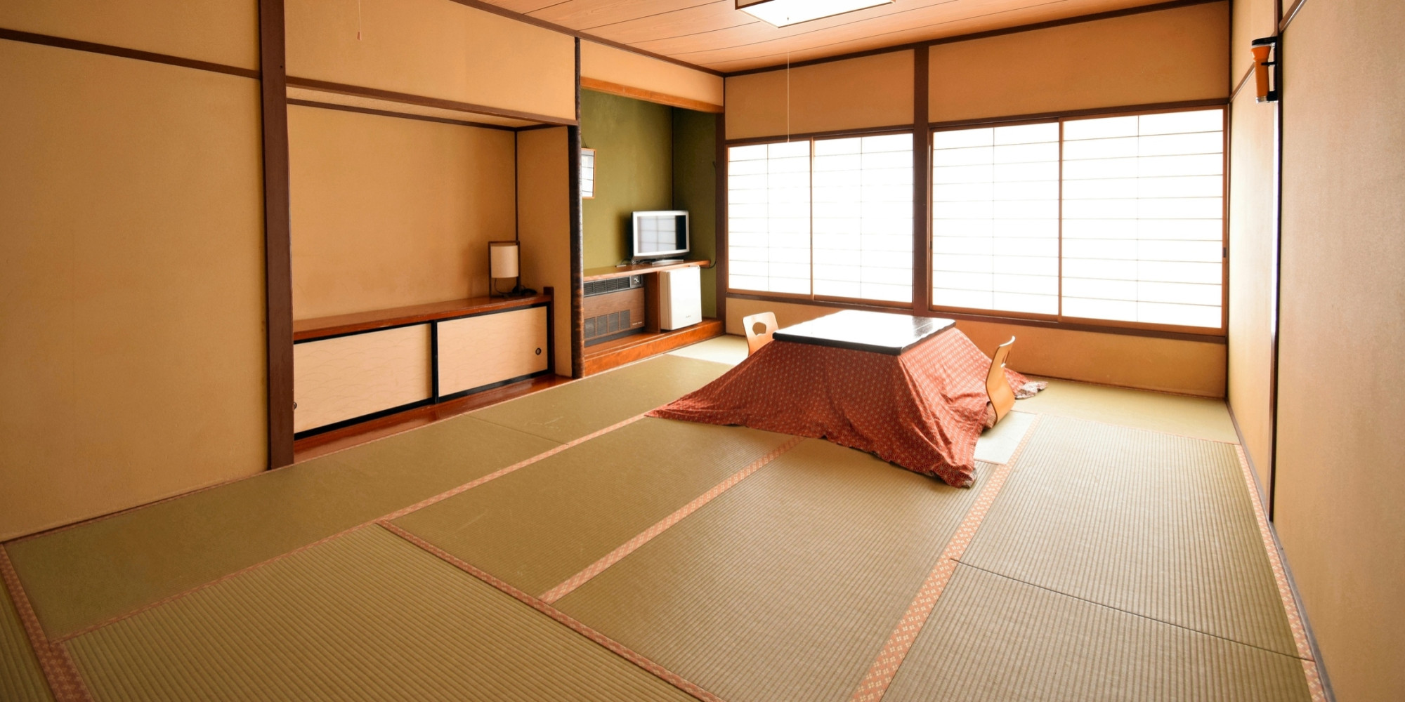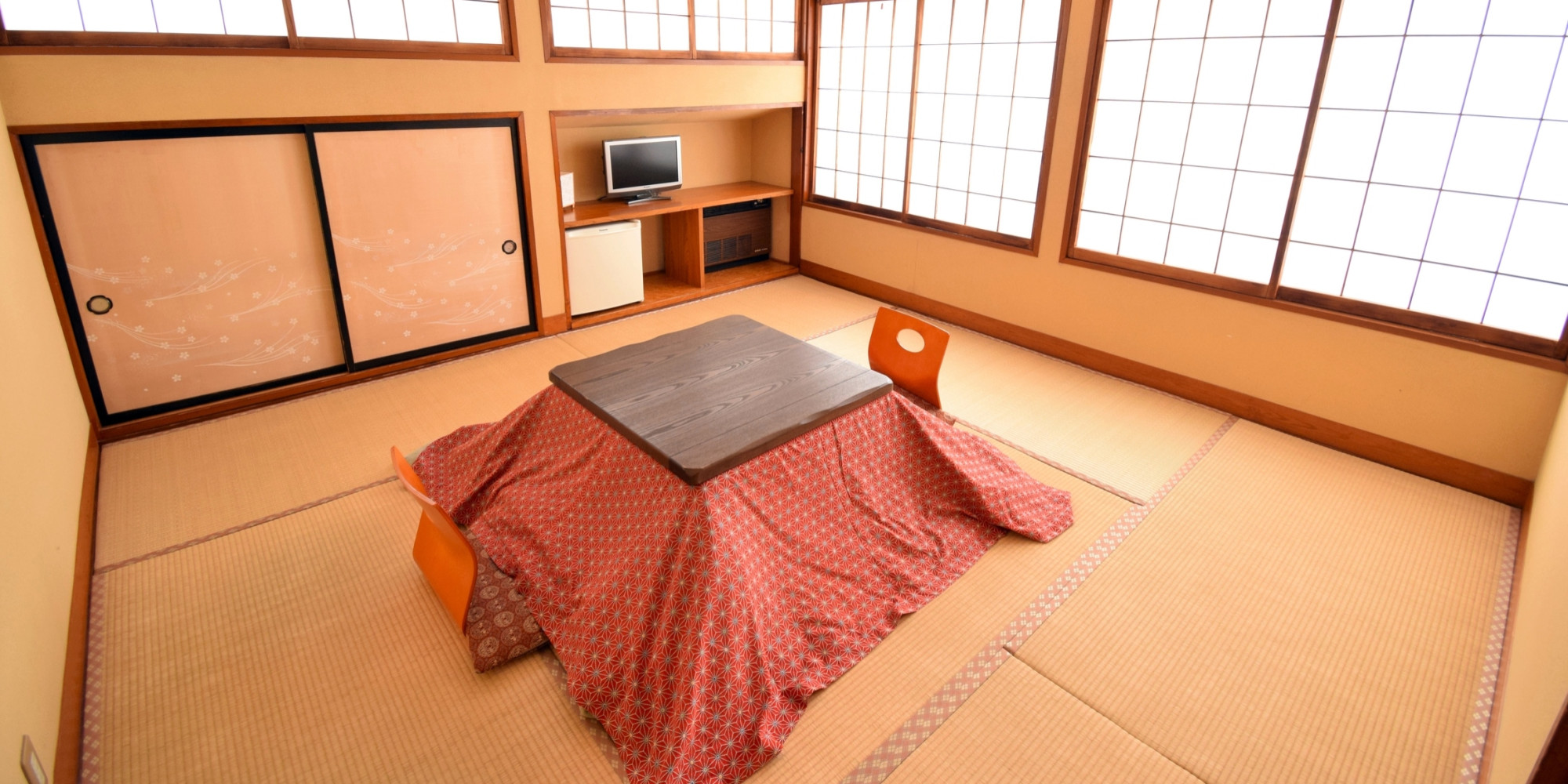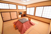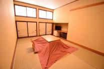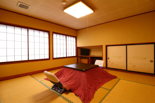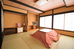 全室和室で草津の冬は、おこたつでのんびりくつろげます。