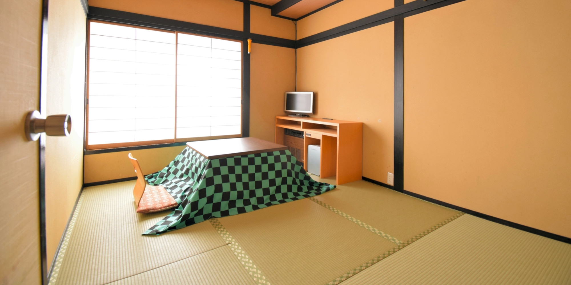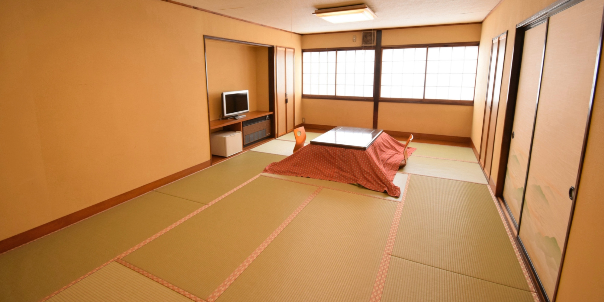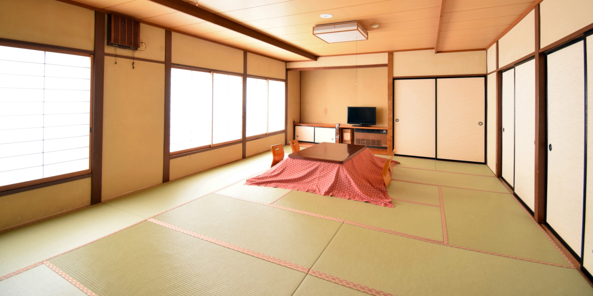 全室和室で草津の冬は、おこたつでのんびりくつろげます。