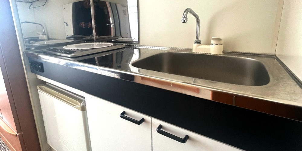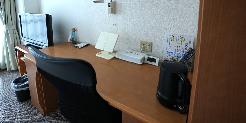 シャンプー・リンス・ボディソープ・石鹸・タオル・バスタオル・ハミガキセット・ドライヤー・ナイトウェア・スリッパ・冷蔵庫・湯沸しポット・テレビ