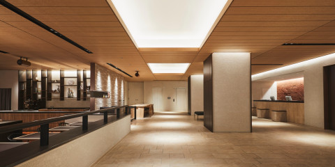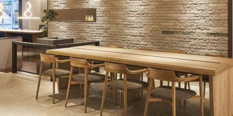 上質な空間を追求。ロビーに大きなテーブルを配置。