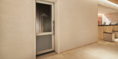 “水の都”大阪の自然美から連想し、水をモチーフにしたカーペットでお部屋へと導きます。